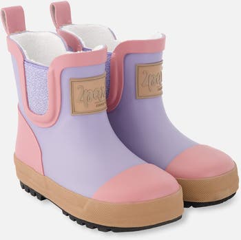 Our short rain boots in natural rubber keep little feet dry in style. These ankle-height waterproof boots feature a fine plush lining for warmth and comfort, perfect for rainy day adventures. Made from 100% natural rubber, they’re BPA, phthalate, and PAH free — a safe, eco-conscious choice for girls and baby girls.