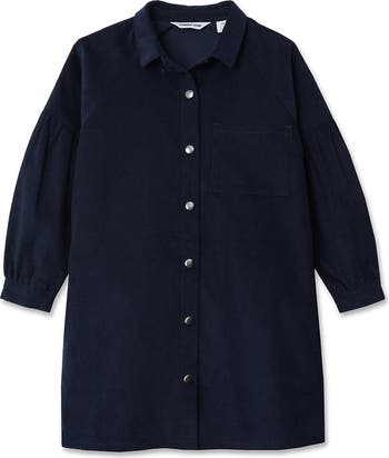 For the trend setter, this boxy corduroy shirt dress is sure to be her new favorite. The easy fit means she can play all day. Cute 3/4 length sleeves have a slight puff detail for some extra style. Corduroy has never been so fun!