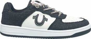 The True Religion Allison Lace Up Sneaker offers a stylish, elevated look with its iconic logo detailing and denim colorway that adds a playful touch. Featuring a durable outsole for added stability and traction, these sneakers provide a secure fit with every step. The comfort construction ensures a cushioned and supportive feel, making them perfect for all-day wear.