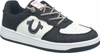 The True Religion Allison Lace Up Sneaker offers a stylish, elevated look with its iconic logo detailing and denim colorway that adds a playful touch. Featuring a durable outsole for added stability and traction, these sneakers provide a secure fit with every step. The comfort construction ensures a cushioned and supportive feel, making them perfect for all-day wear.
