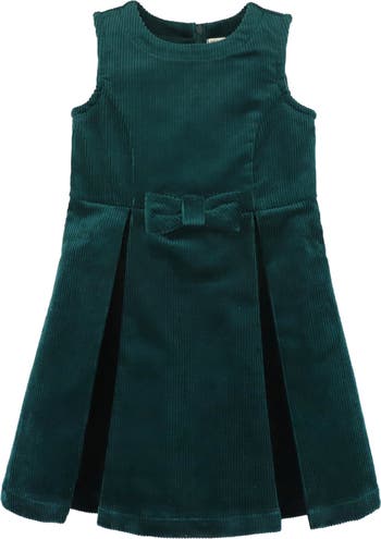 Jumpstart the holiday season with one of our favorite layering pieces! Cut from soft organic cotton, our jumper features a pleated skirt, bow front detail, and zipper closure down the center back for easy dressing. Can easily be worn on it's own, but looks equally adorable paired with one of our organic cotton knit tops for a little extra style and warmth.