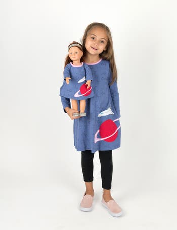 Girls Cotton Dress with Matching Doll Dress, Printed Design