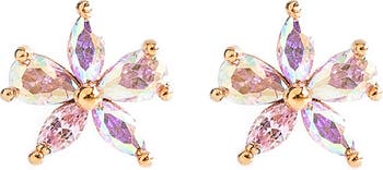 Delicate gardenias give your attire a tropical feel in these stud earrings featuring colorful cubic zirconia.