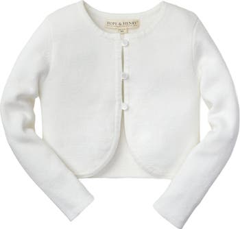 The best layer to top off all her dressy outfits. Our cropped cardigan sweater is knitted in fine gauge organic cotton with full fashioning at armholes and delicate pearlized button and loop closure at the front. Gently curved front hem gives that feminine touch. Layers perfectly over our collection of organic cotton dresses, tops, and leggings.