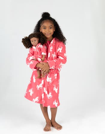 Leveret Girls Fleece Hooded Robe with Matching Doll Robe, Main, color, Unicorn