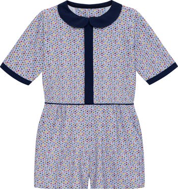 Romper perfection! Made with girls in mind with a hidden zipper for ease on and off. The recycled nylon and spandex blend makes this a girls dream, easy to move and play. The floral print is feminine and playful with a touch of seersucker for sophistication. A classic design with beautiful performance fabric.