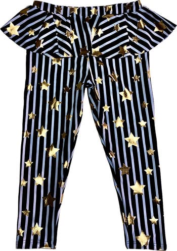 Girls' Gold Star Print Relaxed Leggings Ruffle Detail