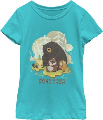 Don't wait—run, crawl, swim, or even fly to snag the new officially licensed Hoppers apparel from the upcoming Disney Pixar feature film! Immerse yourself in an unforgettable adventure and uncover astonishing mysteries within the animal kingdom that will leave you in awe. This fantastic Girls' Beaver Pond Crew Graphic T-Shirt showcases Ellen, King George, Loaf, Mabel, and Tom Lizard striking their signature poses among trees and playful paw prints, along with the statement "Pond Crew". Get yours now and be part of the excitement!