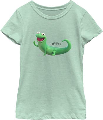 Hop into happiness with this officially licensed Hoppers graphic apparel, inspired by the all-new Disney Pixar movie! This hilarious Girls' Tom Lizard Happy and Cute Pose Graphic T-Shirt features Tom striking a joyful, fun-loving pose alongside the official movie logo across the front. Embrace your unique style and show off your love for all things lizard with these fantastic designs. Get yours today and bring some fun to your casual outfits!