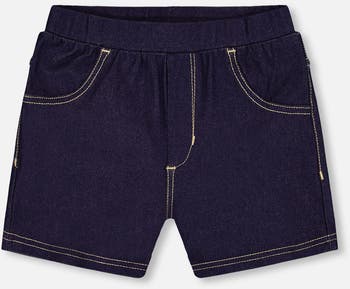 A must-have in every little girl's wardrobe, our Jegging Shorts Dark Denim Blue mix and match easily with every top she owns! As soft and stretchy as her favorite leggings, these shorts feature an easy pull-on fit with an elastic waistband, contrast stitching, and embroidery back patch pockets.