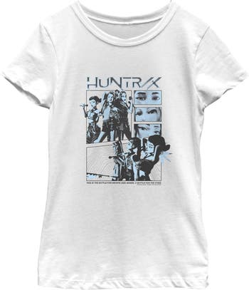 - Unleash your inner idol with this eye-catching girls' t-shirt perfect for concerts, hangouts, or everyday slaying! Featuring Huntrix's members, Rumi, Mira, and Zoey posing printed across the front.