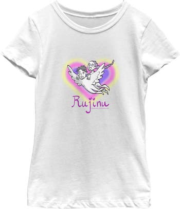 Prepare for debut with these incredible designs from the new, top-charting Netflix Film: K-Pop Demon Hunters! Dance to Soda Pop or Takedown with this Girls' Fan Art Rujinu Graphic T-shirt featuring a cute fan art of Rumi and Jinu soaring through the sky with a colorful heart in the background and the word "Rujinu" printed below. These designs are going to be everything you can think of, so gear up to take all demons down while looking like the greatest idol the world has ever seen with out-of-this-world, officially licensed K-Pop Demon Hunters apparel!