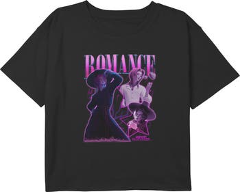 - Unleash your inner idol with this eye-catching girls' cropped t-shirt perfect for concerts, hangouts, or everyday slaying! Featuring a colorful collage of Romance from K-pop Demon Hunters printed across the front.
