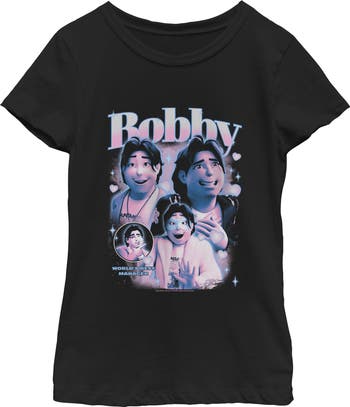 - Unleash your inner idol with this eye-catching girls' t-shirt perfect for concerts, hangouts, or everyday slaying! Featuring a colorful collage of Bobby from K-pop Demon Hunters