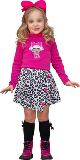 Designed for little style divas, our L.O.L. SURPRISE!™ x Mia Belle Girls Diva skort set is pretty on top and party on the bottom. Its fuchsia turtleneck top is embroidered with the fabulous Diva doll, while the cheetah print skort flaunts matching buttons to pull the look together.How can you say no?