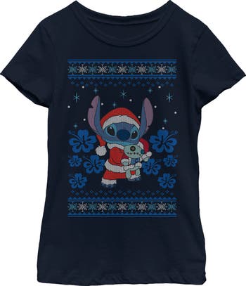 Ohana means family, and that means no tee gets left behind for Christmas with this officially licensed Disney Lilo & Stitch Christmas with Scrump Tee! This festive Girls' design features a smiling Stitch in a Santa outfit holding Scrump, printed in an ugly sweater fashion. Grab this new graphic tee for the holiday season and celebrate Christmas with style!
