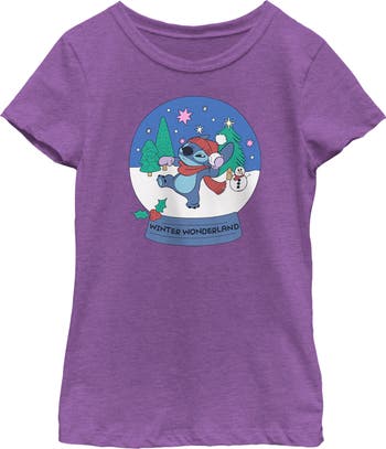 - Strut your stuff with this stylish new Christmas girls' tee that is perfect for the holidays! Featuring the adorable Stitch inside a snow globe enjoying a Winter Wonderland.