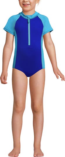 It's like a rash guard and one-piece swimsuit all in one! Plus, the front zipper allows for easy on & off wet or dry. And, for your peace of mind, we've used UV-blocking, UPF 50 rated fabric to protect them from the sun's harmful rays and lined thesuitto keep them properly covered.