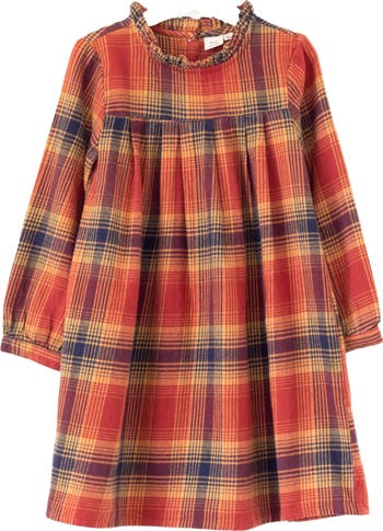 Girls' Long Sleeve Plaid Flannel Dress | Orange Check