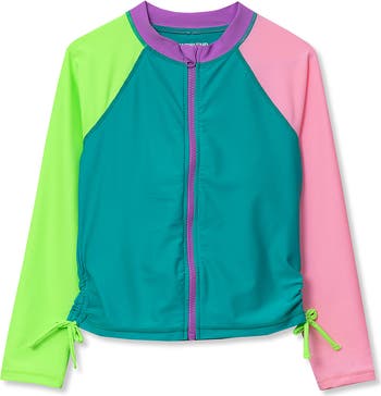 Girls Long Sleeve Zip Front UPF 50 Rash Guard