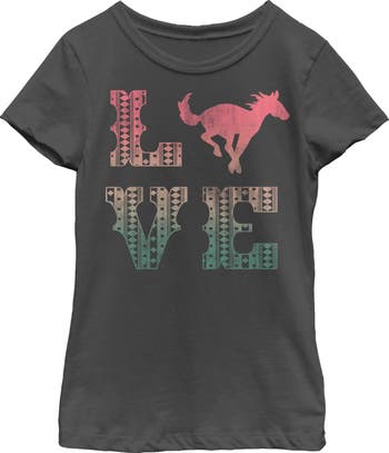- Strut your stuff with this stylish new Girls' Graphic T-Shirt that is perfect for every occasion! Featuring a silhouette of a horse with the word "Love" with an ombre fill!