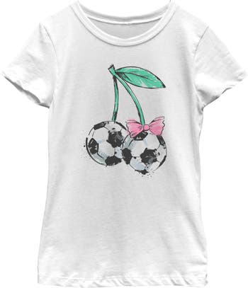 - Wear your pride loud with this stylish new girls' t-shirt that is perfect for goal celebrations! Featuring two soccer balls depicted as adorable cherry twins and adorned with a flirty pink bow.