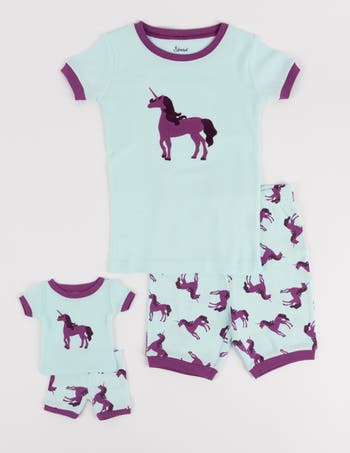 - Matching Girls and doll short pajama sets in a variety of fun prints
