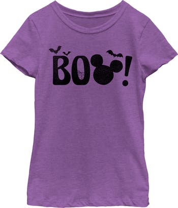Who knew that dressing "mousey" could be so cute!? Celebrate Walt Disney's most iconic character with this officially licensed Mickey Mouse and Friends style! This adorable Large Boo Girls' Tee features "Boo!" printed across the front with bats flying around and the Disney logo as an "O", perfect for your next Halloween!