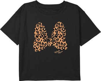 - Your fashion will be spot on with this stylish new girls' cropped t-shirt that is perfect for every occasion! Featuring Minnie Mouse's bow filled with leopard spots, along with the iconic Minnie signature below.