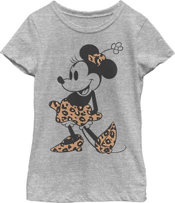 - Strut your stuff with this stylish girls' classic t-shirt that is perfect for Disney fans! Featuring a portrait of Minnie Mouse wearing a leopard-inspired outfit across the front.