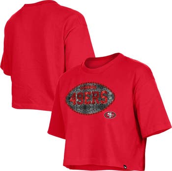 Young fans can now shine like their favorite team this season with this San Francisco 49ers Flip Sequin Boxy T-Shirt from New Era. Designed with dropped shoulder seams, this tee provides ease of movement so the kiddos can cheer on the team in all-day, stylish comfort. The sequin decorated football with team name and screen printed team logo at the center chest sparkles with San Francisco 49ers fandom from kickoff until the end of the game.