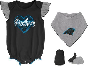 Girls Newborn & Infant Black/Heathered Gray Carolina Panthers All The Love Bodysuit Bib & Booties Set