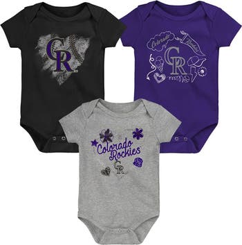 Girls Newborn & Infant Black/Purple/Heathered Gray Colorado Rockies 3-Pack Batter Up Bodysuit Set