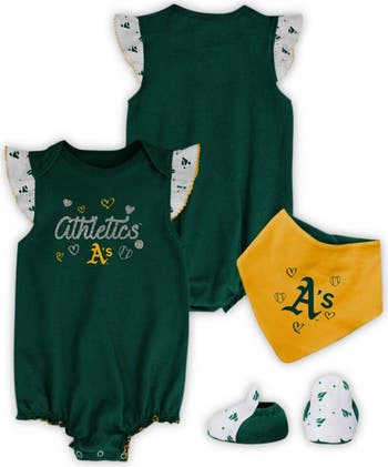 Girls Newborn & Infant Green Oakland Athletics 3-Piece Home Plate Bodysuit Bib & Booties Set