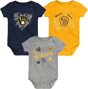 Girls Newborn & Infant Navy/Gold/Heathered Gray Milwaukee Brewers 3-Pack Batter Up Bodysuit Set