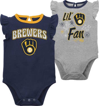 Girls Newborn & Infant Navy/Heather Gray Milwaukee Brewers Little Fan Two-Pack Bodysuit Set