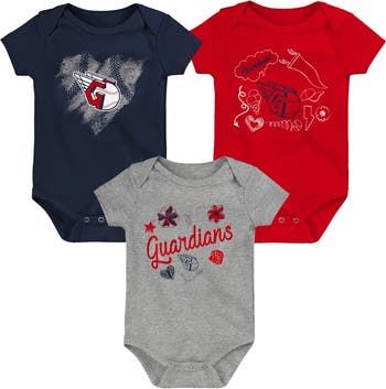 Girls Newborn & Infant Navy/Red/Heathered Gray Cleveland Guardians 3-Pack Batter Up Bodysuit Set