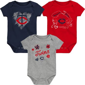 Girls Newborn & Infant Navy/Red/Heathered Gray Minnesota Twins 3-Pack Batter Up Bodysuit Set