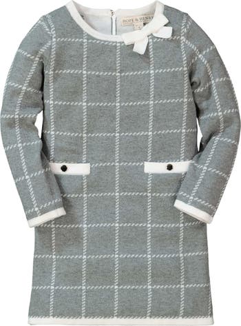 One of our top-selling sweater dresses in soft organic cotton will be your girl's go-to item for fall. Features flattering A-line styling with long sleeves, elegant gold buttons at the decorative welt pockets, and a bow detail at the neckline. A sweet style she'll be wearing all fall and winter long.