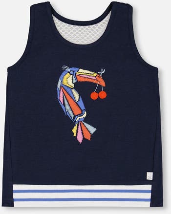 Girl's Organic Cotton Tank Top Navy Blue And Toucan