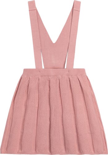 Our adorable pleated sweater suspender skirt in soft organic cotton pairs comfort with picture-perfect style. Features pretty allover pleats with a seed stitch texture, an elastic waistband, and an adjustable button front for the perfect fit. Layers perfectly with our beautiful collection of organic cotton knit tops, sweaters, and cable leggings!