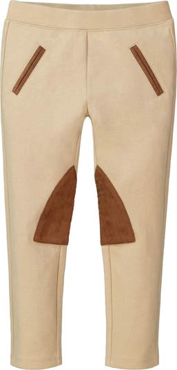 - For the equestrian at heart, our riding pant in luxurious ponte di Roma will be your girl's go-to pant of the season. Our cozy knit is much thicker than the average legging and offers easy pull-on functionality with a flat elastic waistband. Features a slim fit and lovely faux suede double welt decorative pockets and quilted knee patches