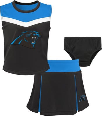 Show everyone how proud your little one is to support the Carolina Panthers with this Spirit Cheerleader set. Including a top, skirt and bloomers, this set lets your new fan feel like part of the Carolina Panthers family. Made with lightweight fabric, each piece is soft, comfy and durable for taking on game day.
