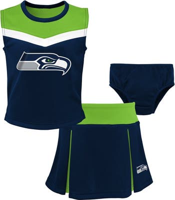 Show everyone how proud your little one is to support the Seattle Seahawks with this Spirit Cheerleader set. Including a top, skirt and bloomers, this set lets your new fan feel like part of the Seattle Seahawks family. Made with lightweight fabric, each piece is soft, comfy and durable for taking on game day.