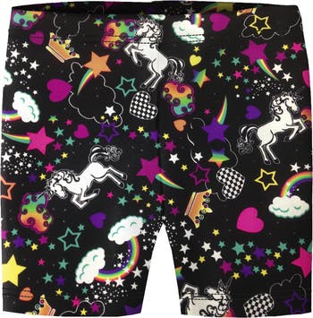 - BOLD PATTERNS - Make a statement in these Bike Shorts that feature bold patterns and shimmering colors.