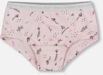 Girl's Printed Organic Cotton Boyshort Panty Small Pink Flowers On Pale Pink Background