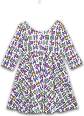 Featuring a scoop back and the perfect amount of twirl, our girls printed twirly dress will be an instant favorite! The fun and funky prints make the twirly dress perfect for any occasion, from Back to School to family parties.