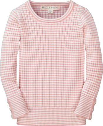 Hope & Henry Girls' Rib Knit Sweater Top, Infant, Alternate, color, White And Rose Mini Stripe