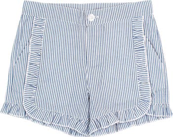 Girls Seersucker Ruffle Trim Woven Shorts