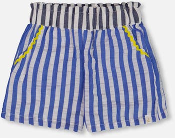 Contrasting stripes lend playful charm to our Seersucker Short Blue and White Striped. In soft and lightweight fabric, these comfy shorts feature an easy pull-on fit with a contrast elastic waistband, slant front pockets, and contrasting ricrac trim for an added pop of color.